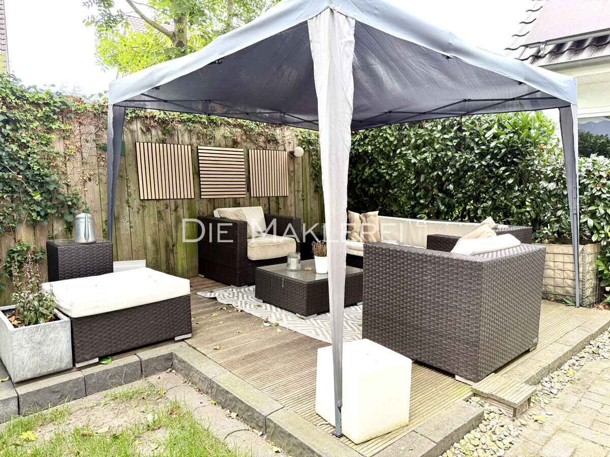 Ein großzügig angelegter Garten mit gemütlichen Sitzgelegenheiten lädt zum Verweilen ein und lässt die Herzen aller Hobbygärtner höher schlagen.