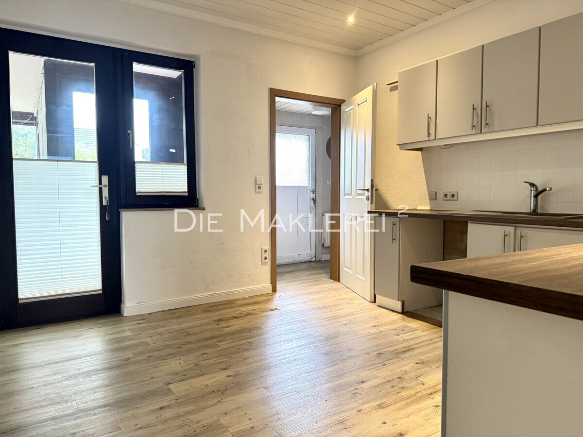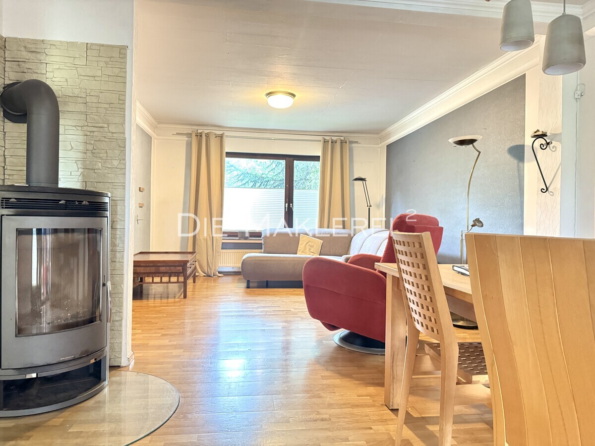 Dieses Einfamilienhaus aus dem Baujahr 1963 bietet auf drei Ebenen ausreichend Platz für die ganze Familie.Vom Eingangsbereich gelangt man zum Einen in ein großzügiges Schlafzimmer mit Bad on Suite und zum Anderen in den Wohn-/ Koch- und Essbereich. Dieser ist mit einem Kaminofen ausgestattet. Von hieraus gelangt man über bodentiefe Fensterfronten in den gemütlichen Wintergarten sowie die windgeschützte Holzterrasse mit Blick in den pflegeleichten Garten. Ein Gäste-WC aus dem Baujahr, und ein Abstellraum runden das Angebot im Erdgeschoss ab.