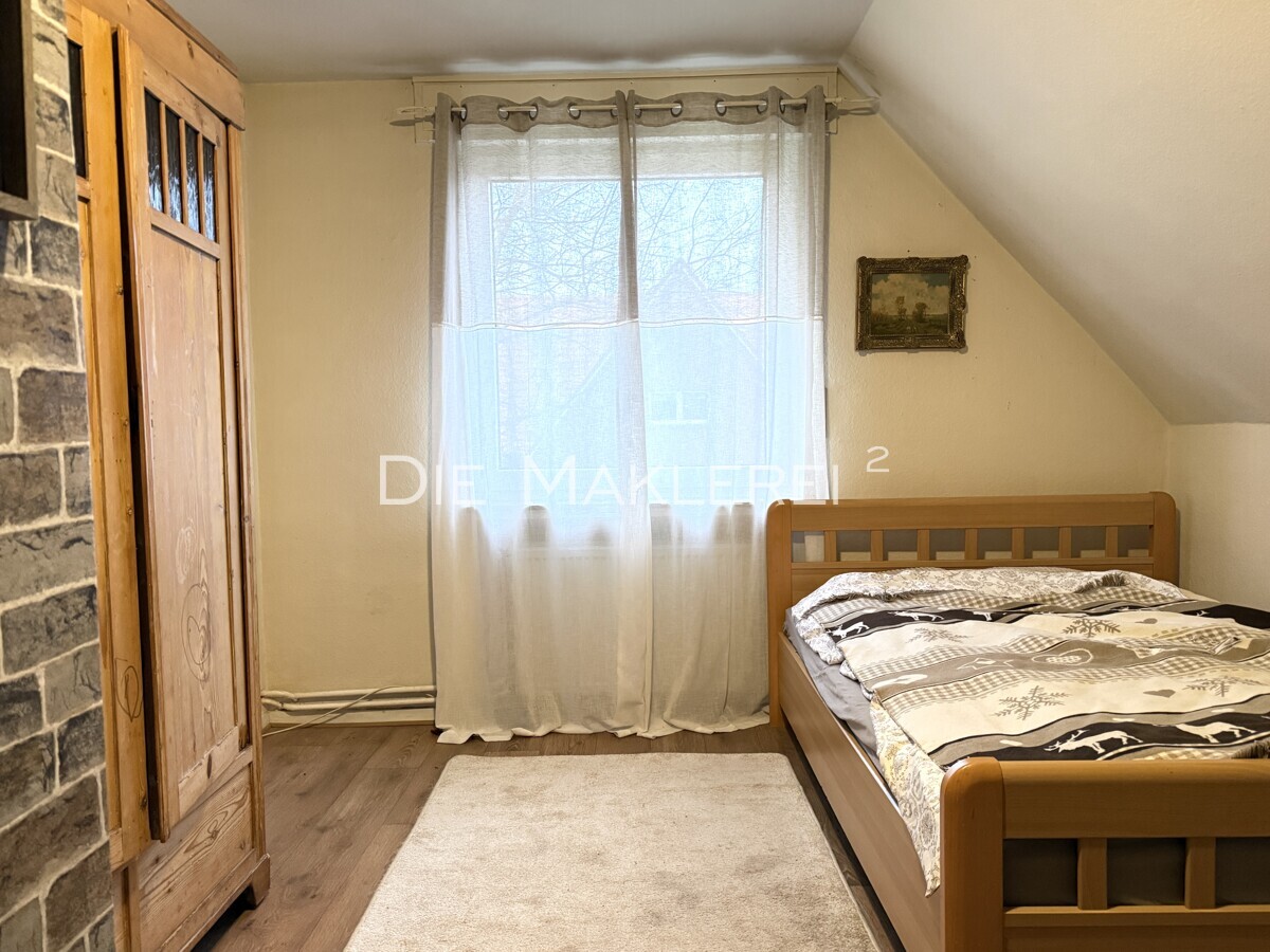 Über eine urige Steintreppe im großzügigen Flur gelangt man ins Dachgeschoss. Hier stehen dem neuen Eigentümer vier groß geschnittene Schlafzimmer und ein Bad/WC zur Verfügung.